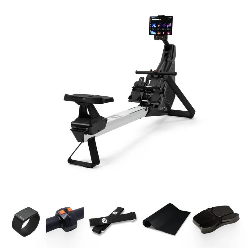 Introducing the all new Aviron Strong Go. Sleek, modern, and award winning rowing comfort, paired with Aviron's unique fitness entertainment platform, all on your ipad.